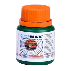 CROPMAX este un biostimulator superconcentrat, ce contine stimulatori de crestere, vitamine pentru plante, polizaharide, enzime, macro si microelemente. Produsul este recomandat spre a fi utilizat pentru a stimula dezvoltarea rapida a sistemului radicular, care determina o crestere considerabila a rezistentei plantelor la seceta si stres la conditiile climatice. Folosind CROPMAX, va asigurati culturi cu o crestere sanatoasa a plantelor, si un potential de productie crescut, in care se va imbunatati atat calitatea productiilor, cat si rezistenta plantelor la boli si daunatori.